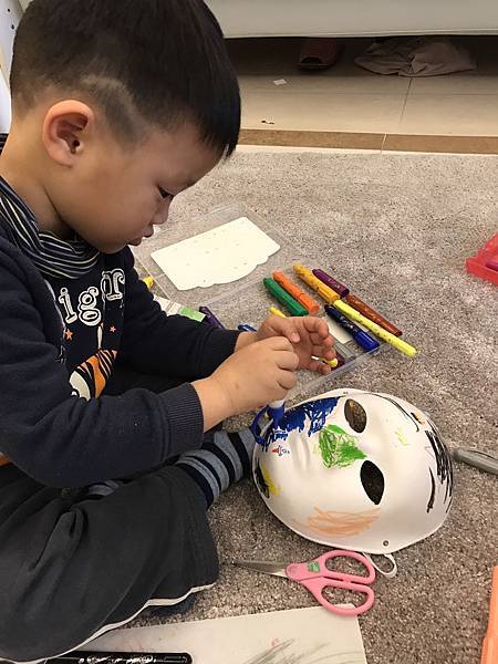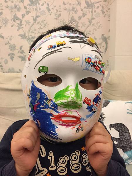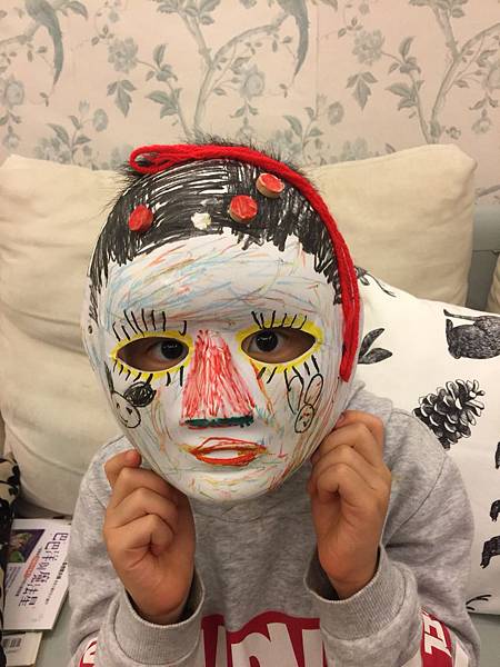 晚上睡前例行分享本日最開心的事時,兩兄弟不約而同都是『跟媽咪一起做面具