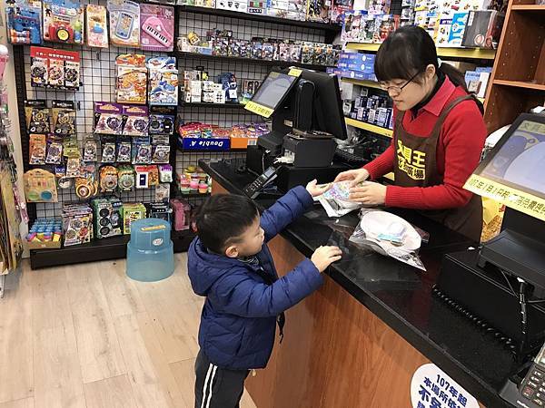 到了文具店門口,我當然不會錯過這預算控制的隨堂練習時間,正如我演講中所說的,生活中處處是理財教養情境,『小時在小錢上亂花,長大在大錢上也不會謹慎』。我告訴他們,『今天你們每人可以有50元來買材料,如果有超過的部分,可以用自己的零用錢來補,沒用完剩下的可以變成你們的零用錢』(前情提要:兄弟倆現在每日依當日表現有1~2元的零用錢,日子一長也是累積了一些儲蓄),兩兄弟開始興高采烈地逛文具店。