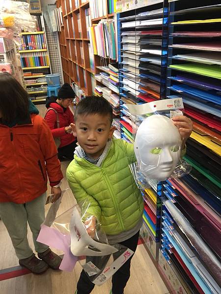 兄弟倆開始挑選自己想要的東西,本來他們想買黏土,後來又看到面具模型,想買面具來畫,這時候就發現他們開始比價了,哥哥說:『這個面具比較便宜,我選這個好了』,